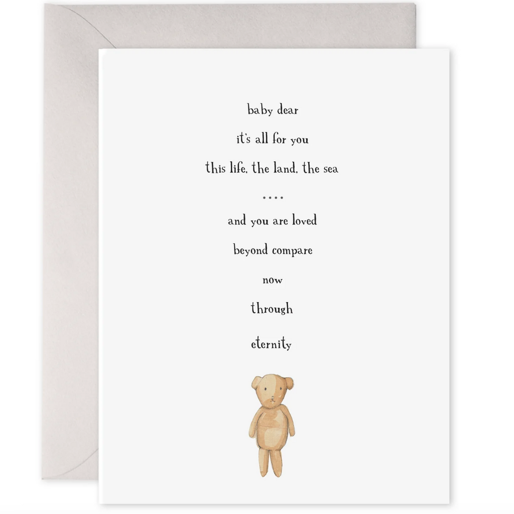 teddy bear with poem on outside, blank inside. Hand illustrated by E.Frances based in Newport, Rhode Island. Packaged sustainably without a plastic sleeve.